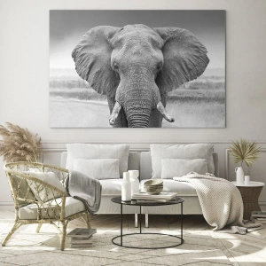 Quadro su vetro - Ritratto di un elefante in bianco e nero - 80x120cm - Benvenuti nel mio mondo - Decorazione murale moderna per soggiorno e camera da letto ARTTOR