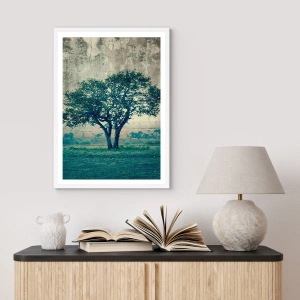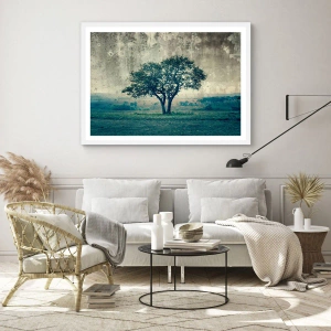 Poster in cornice bianca - Un melo su un prato blu? - 70x50 cm