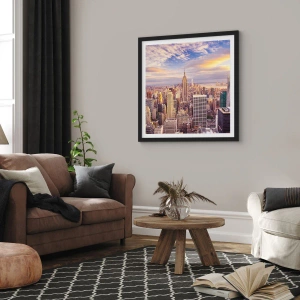 Poster in cornice nera - Panorama di New York City dall'Empire State Building al tramonto - 50x70cm - Toccando le nuvole - Decorazione murale moderna per soggiorno e camera da letto ARTTOR