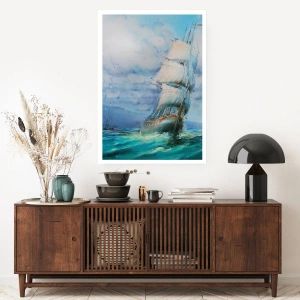 Poster - Una nave in un mare in tempesta - 100x70cm - Con il vento in favore - Decorazione murale moderna per soggiorno e camera da letto ARTTOR