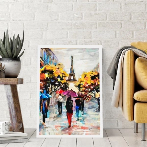 Poster - La Torre Eiffel in un paesaggio autunnale con ombrelli colorati - 50x70cm - Bella soprattutto d'autunno - Decorazione murale moderna per soggiorno e camera da letto ARTTOR