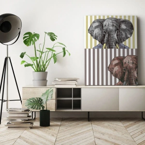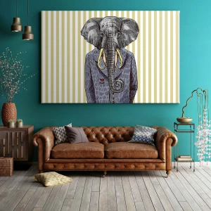 Quadro su tela - Stampe su Tela - Un elefante in abito su uno sfondo di strisce beige - 100x70cm - Elegante di natura - Decorazione murale moderna per soggiorno e camera da letto ARTTOR