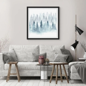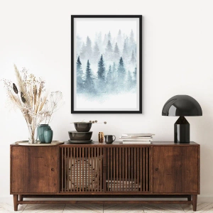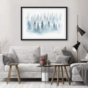 Poster in cornice nera - Foreste di conifere immerse in una delicata nebbia - 100x70cm - Avvolti nella nebbia - Decorazione murale moderna per soggiorno e camera da letto ARTTOR