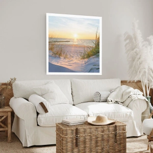 Poster - Spiaggia al tramonto con vista sul mare - 50x70cm - Rumore del mare, uccelli che cantano, spiaggia selvatica tra i cespugli... - Decorazione murale moderna per soggiorno e camera da letto ARTTOR