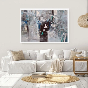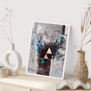 Poster - Composizione geometrica astratta nei toni del grigio e del blu - 50x70cm - L'ordine superiore dei triangoli - Decorazione murale moderna per soggiorno e camera da letto ARTTOR