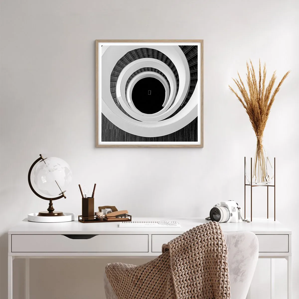 • Arte, astratto, scala a chiocciola, Bianco e nero, Altro, Per l'ufficio, Per lo studio, Per la sala da pranzo, Per l'ingresso, Per il soggiorno, Per la camera da letto, Bianco, Nero, Grigio, Nero e Bianco, Quadrato