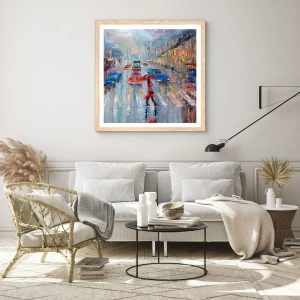 Poster in cornice rovere chiaro - Pomeriggio di pioggia in città - 100x70 cm