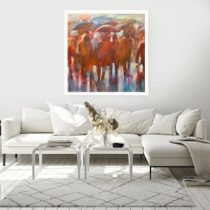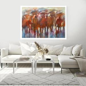 Poster - Una folla di persone con ombrelli in un ambiente piovoso e artistico - 100x70cm - Uguali nella pioggia e nella nebbia - Decorazione murale moderna per soggiorno e camera da letto ARTTOR