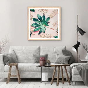 Poster in cornice rovere chiaro - Studio di verde su sfondo rosa - 40x30 cm