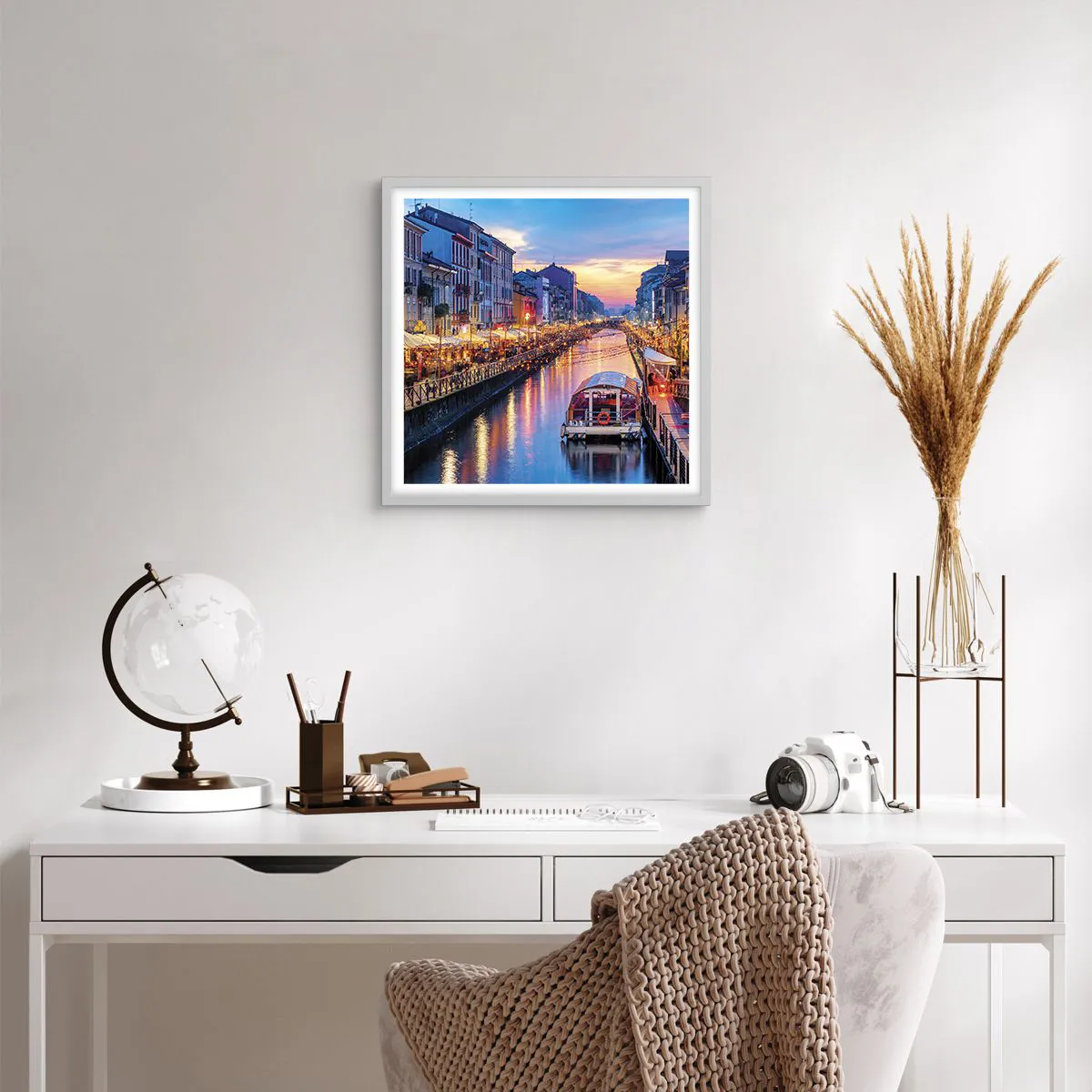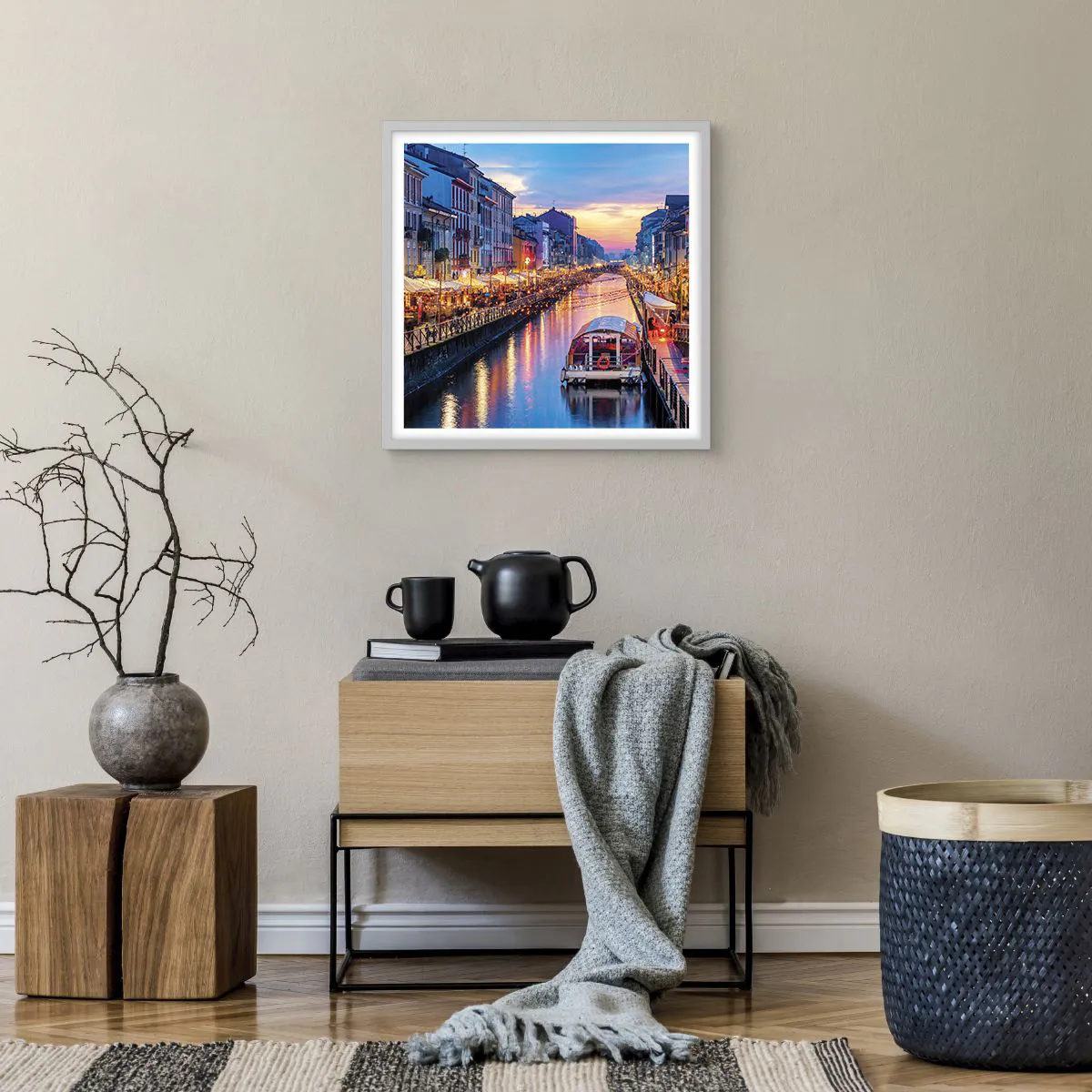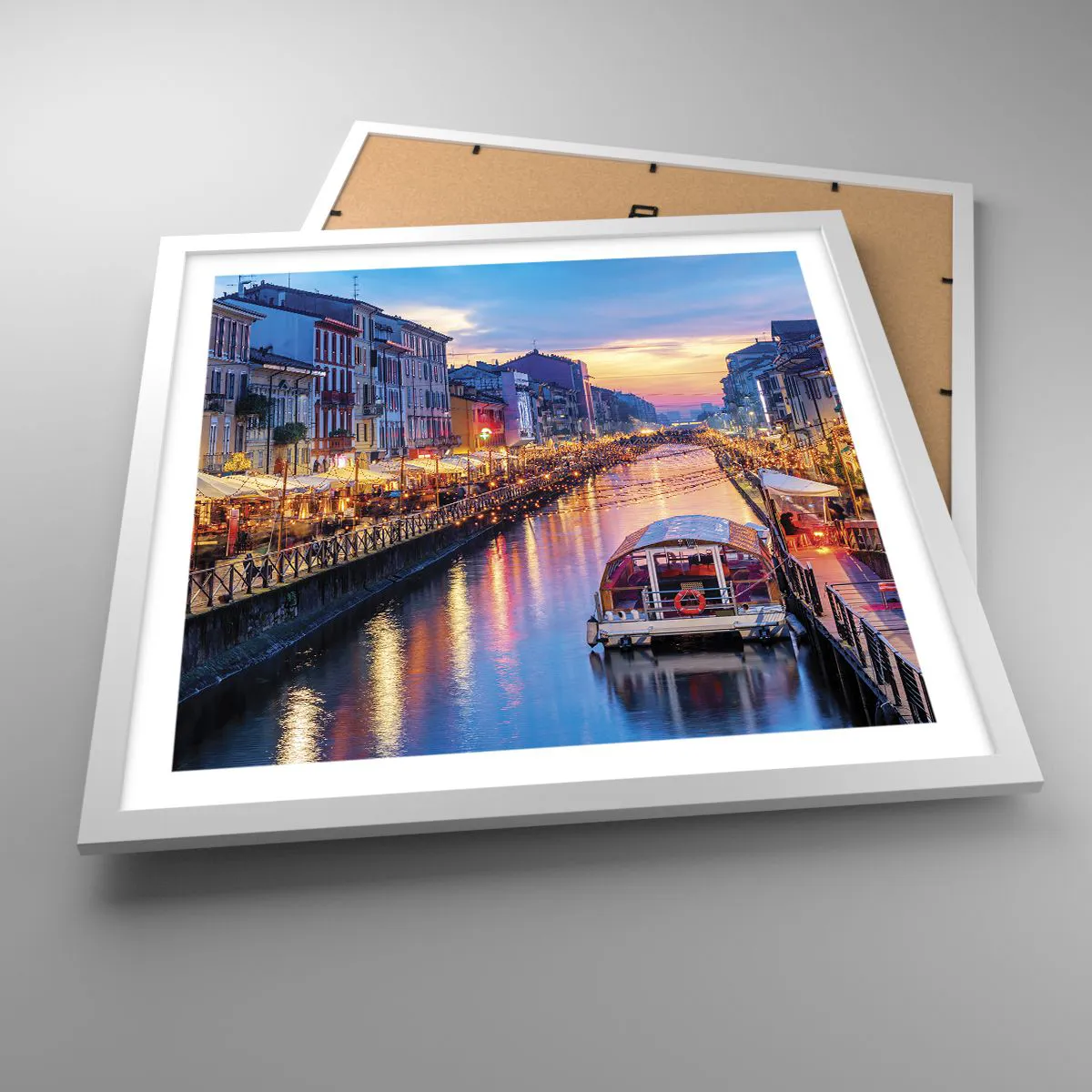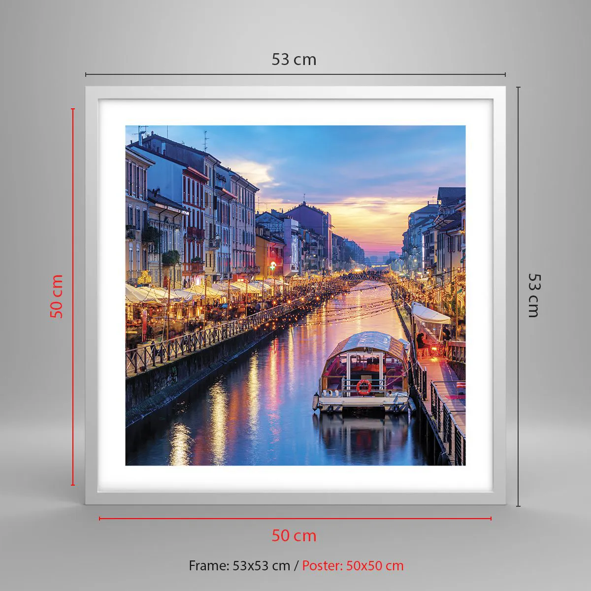 Poster in cornice bianca - Sera di luce e di divertimento - 50x50 cm