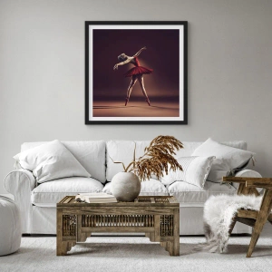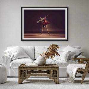 Poster in cornice nera - Una ballerina in abito rosso sullo sfondo di un palco - 100x70cm - Prima ballerina - Decorazione murale moderna per soggiorno e camera da letto ARTTOR