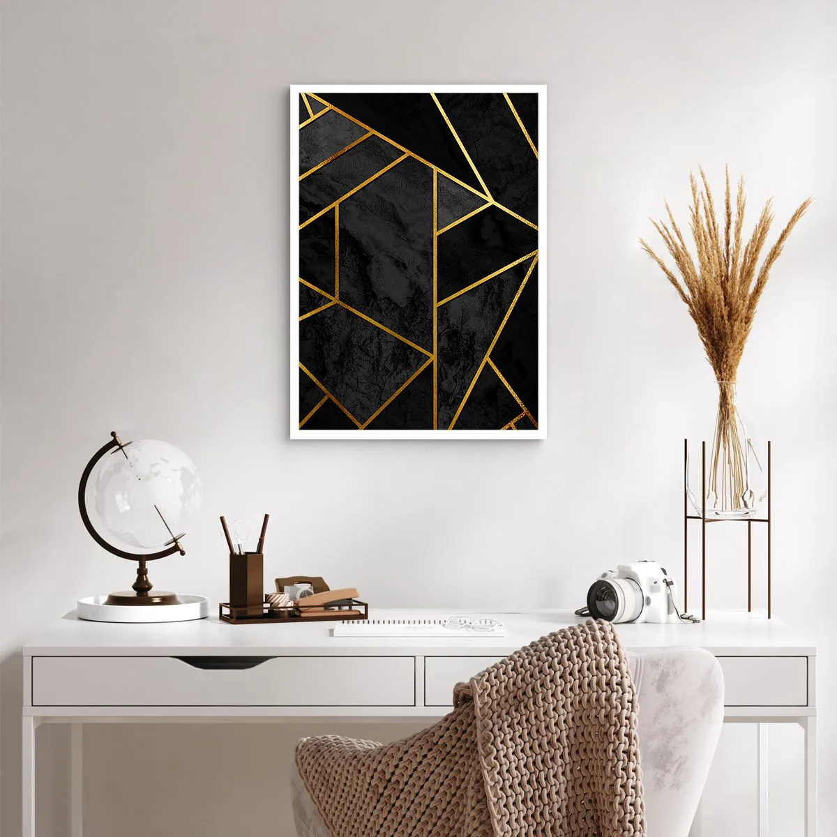 Poster - Motivi geometrici in oro su sfondo nero - 50x70cm - Oscurità e luce - Decorazione murale moderna per soggiorno e camera da letto ARTTOR