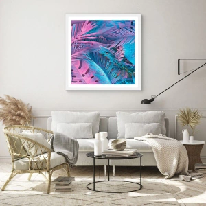 Poster in cornice bianca - Tropici in rosa e blu - 70x50 cm