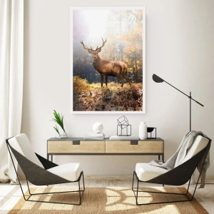 Poster - Cervi nella foresta autunnale con raggi di sole - 100x70cm - Nella piena maestà - Decorazione murale moderna per soggiorno e camera da letto ARTTOR