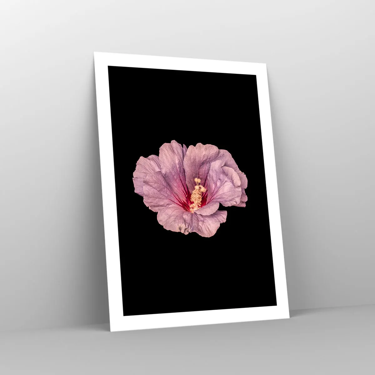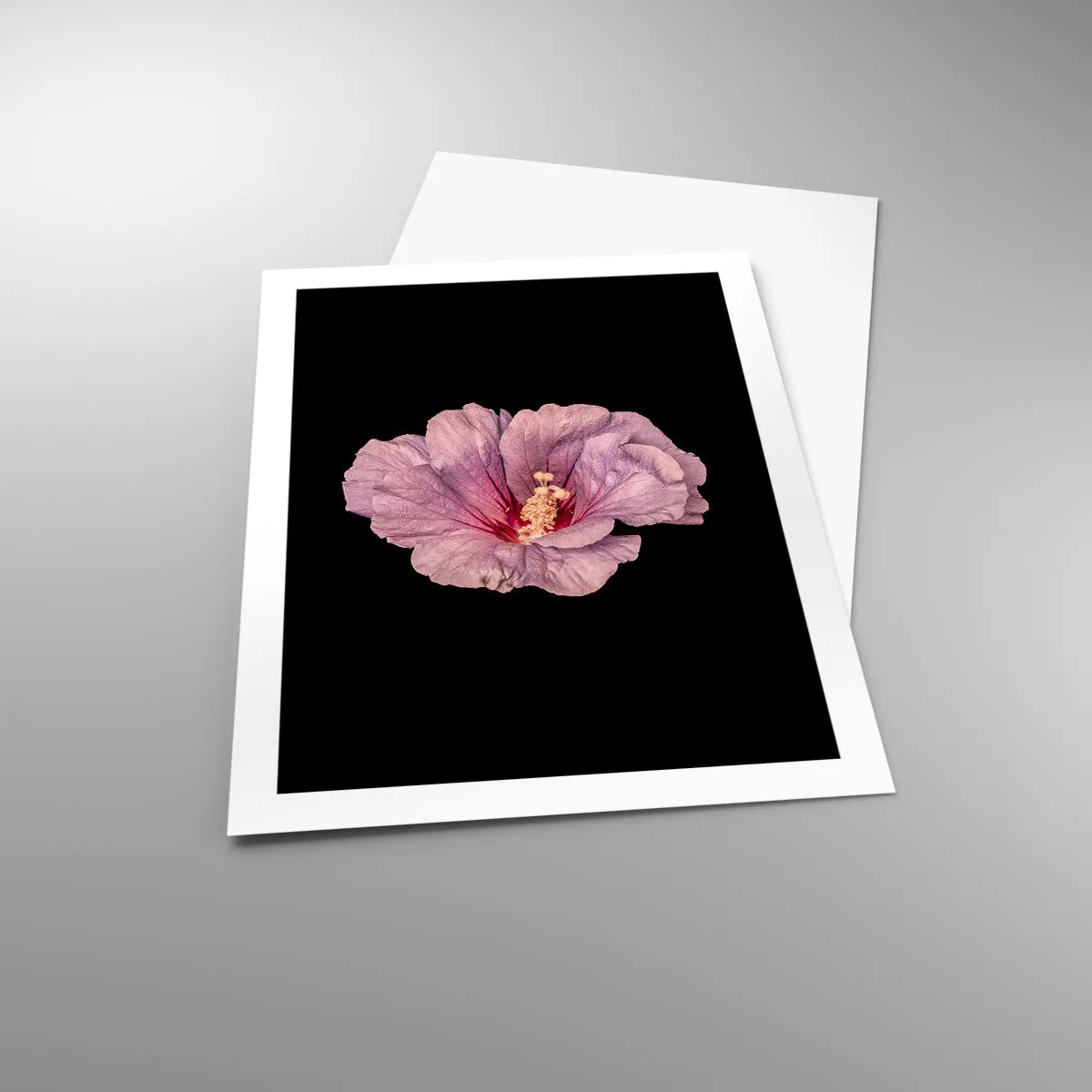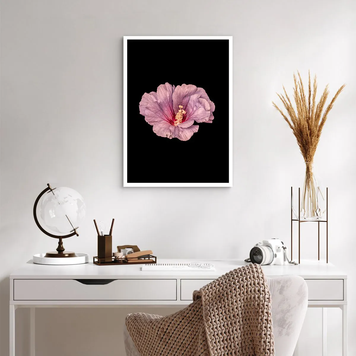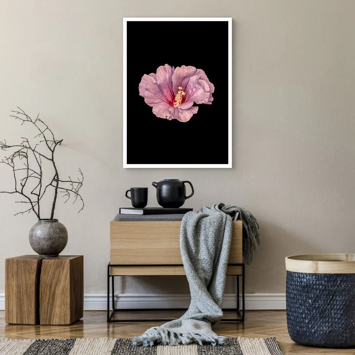 Poster - Delicato fiore di ibisco rosa su sfondo nero - 50x70cm - Dritto al cuore - Decorazione murale moderna per soggiorno e camera da letto ARTTOR
