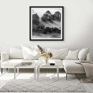Poster in cornice nera - Foresta nebbiosa nei toni del bianco e del nero - 50x70cm - Risveglio dal sonno - Decorazione murale moderna per soggiorno e camera da letto ARTTOR