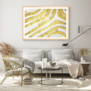 Poster in cornice rovere chiaro - Composizione in bianco e oro - 30x30 cm