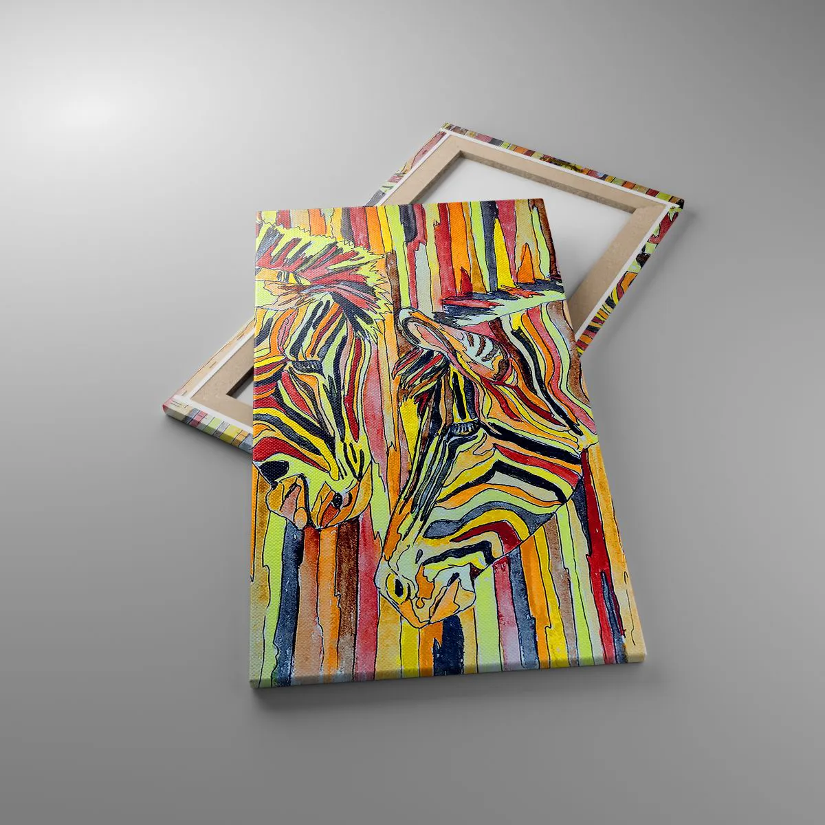 La tela è tesa sul telaio. Anche i bordi sono stampati e creano un prolungamento del quadro. Il quadro è pronto per essere appeso sulla parete. Ogni prodotto possiede un punto di sospensione fissato al telaio e un completo di montaggio (vite + tassello).