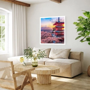 Poster - Una pagoda in Giappone con fiori di ciliegio e il Monte Fuji - 100x70cm - L'essenza dell'anima giapponese - Decorazione murale moderna per soggiorno e camera da letto ARTTOR