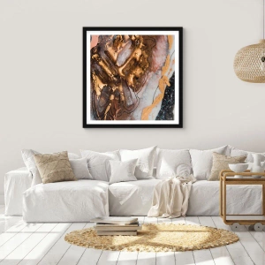 Poster in cornice nera - Composizione astratta con elementi in oro e cristalli - 100x70cm - L'elemento della terra - Decorazione murale moderna per soggiorno e camera da letto ARTTOR