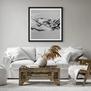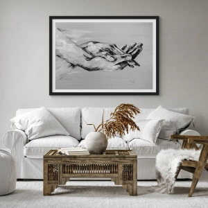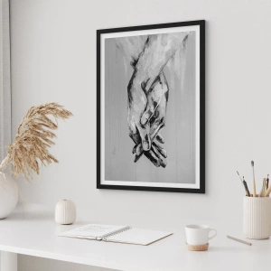 Poster in cornice nera - Immagine monocromatica di mani giunte su sfondo grigio. - 50x70cm - Inizio... - Decorazione murale moderna per soggiorno e camera da letto ARTTOR