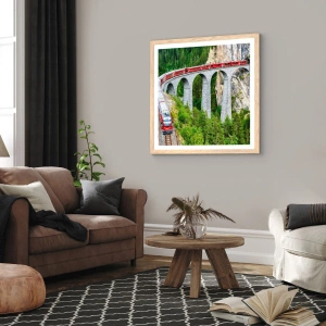 Poster in cornice rovere chiaro - Il treno tra i monti - 50x50 cm
