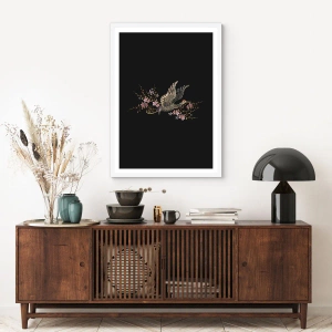 Poster in cornice bianca - Uccello esotico ricamato - 50x70 cm