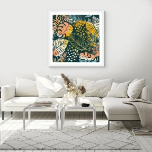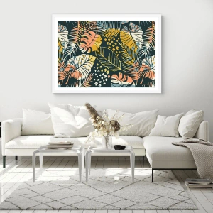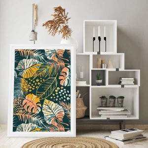 Poster in cornice bianca - Fantasia di foglie - 50x40 cm