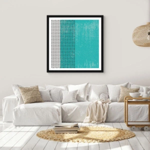 - Un motivo geometrico con elementi turchesi e bianchi in stile minimalista. Il poster perfetto per gli amanti dell'arte contemporanea e degli interni armoniosi.