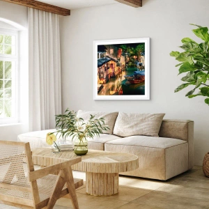 Poster in cornice bianca - Sera in una via cinese - 50x50 cm