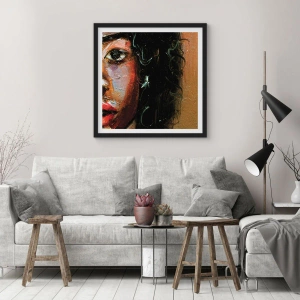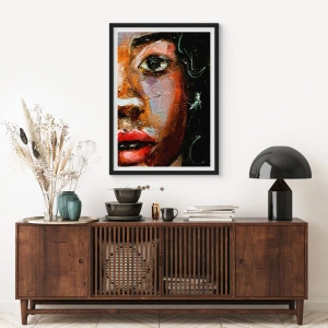 Poster in cornice nera - Un ritratto astratto di una donna dai colori intensi e dallo sguardo espressivo. - 50x70cm - Oscurità e luce - Decorazione murale moderna per soggiorno e camera da letto ARTTOR
