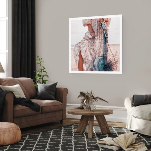 Poster - Un frammento di un vestito con ornamenti e una chitarra in stile boho - 50x70cm - Figli dei fiori in cammino - Decorazione murale moderna per soggiorno e camera da letto ARTTOR