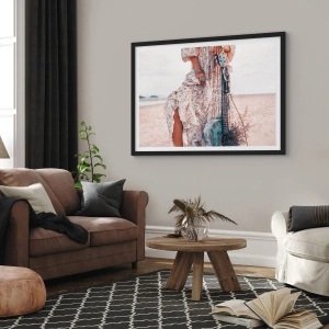 Lo stile boho è sempre stato associato alla libertà, alla libertà e a un approccio artistico alla vita. Questo poster presenta un frammento di un abito delicato decorato con ornamenti unici che ricordano motivi artigianali. Inoltre, il porta chitarra introduce un'atmosfera rustica, rendendo questo elemento non solo una decorazione, ma anche un simbolo di passione musicale.