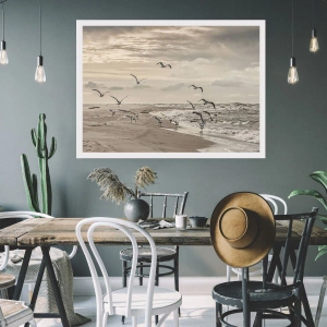 Poster - Un gabbiano in volo sopra un paesaggio costiero - 100x70cm - Brusio del mare, canto degli uccelli - Decorazione murale moderna per soggiorno e camera da letto ARTTOR