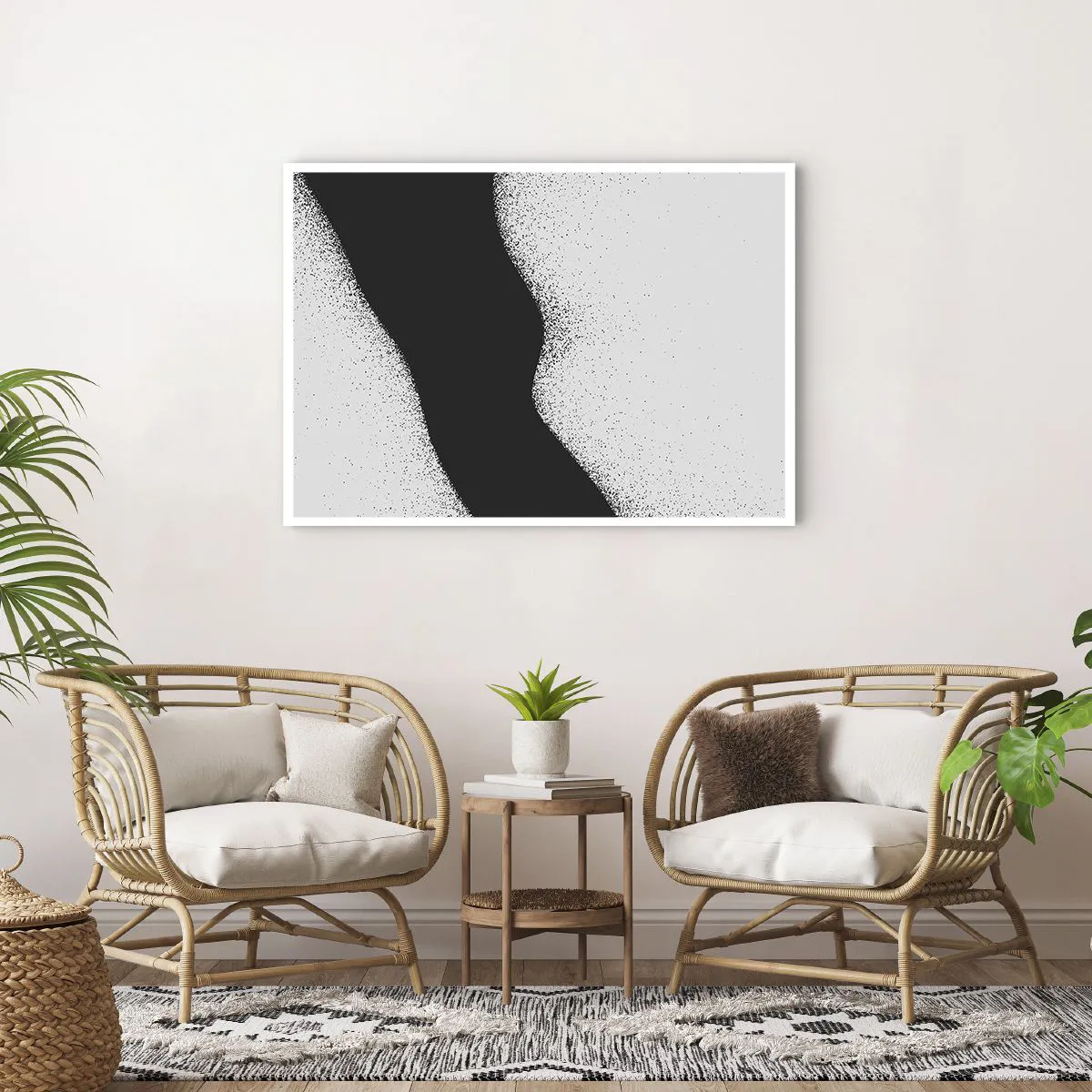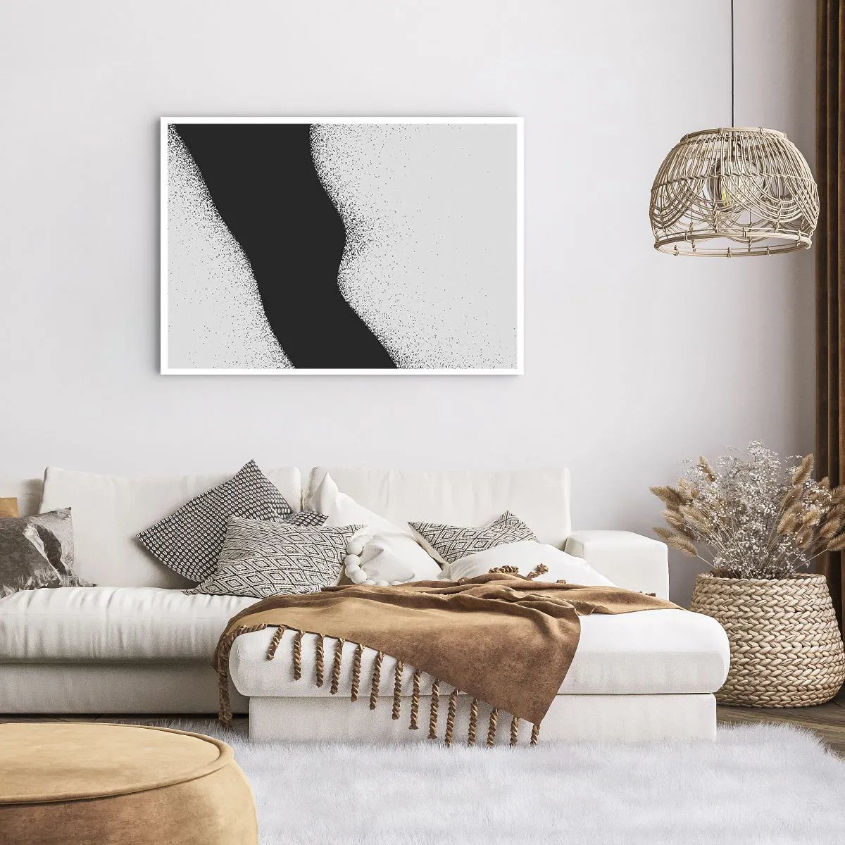 Poster - Motivo astratto in bianco e nero con delicati punti su tela - 100x70cm - Equilibrio fluido - Decorazione murale moderna per soggiorno e camera da letto ARTTOR