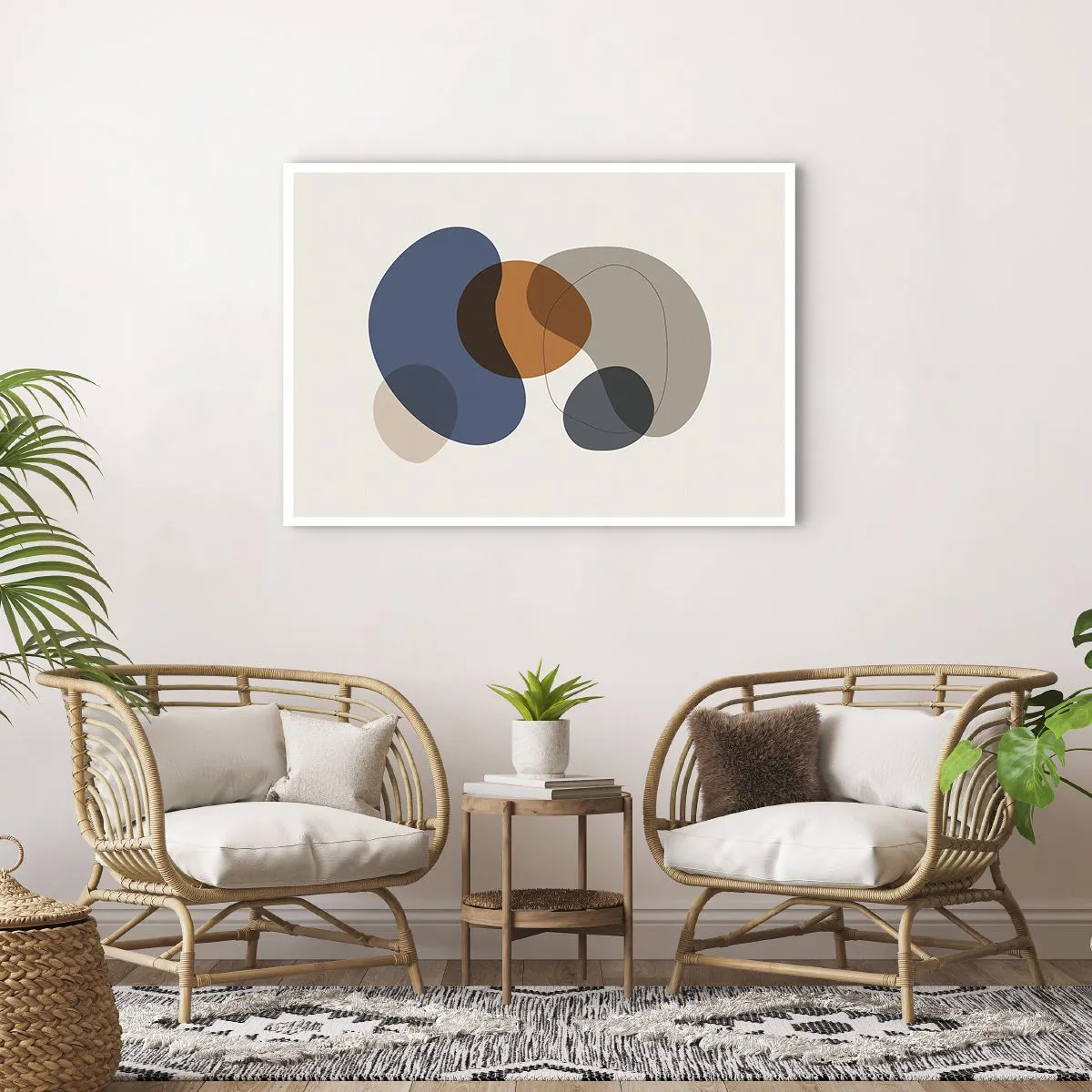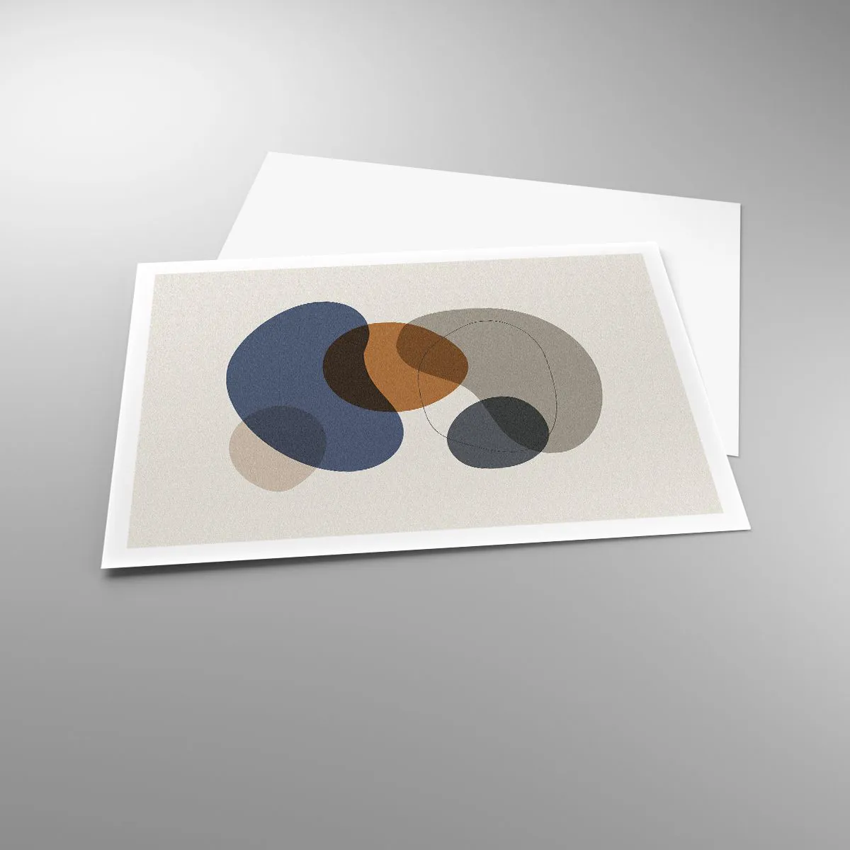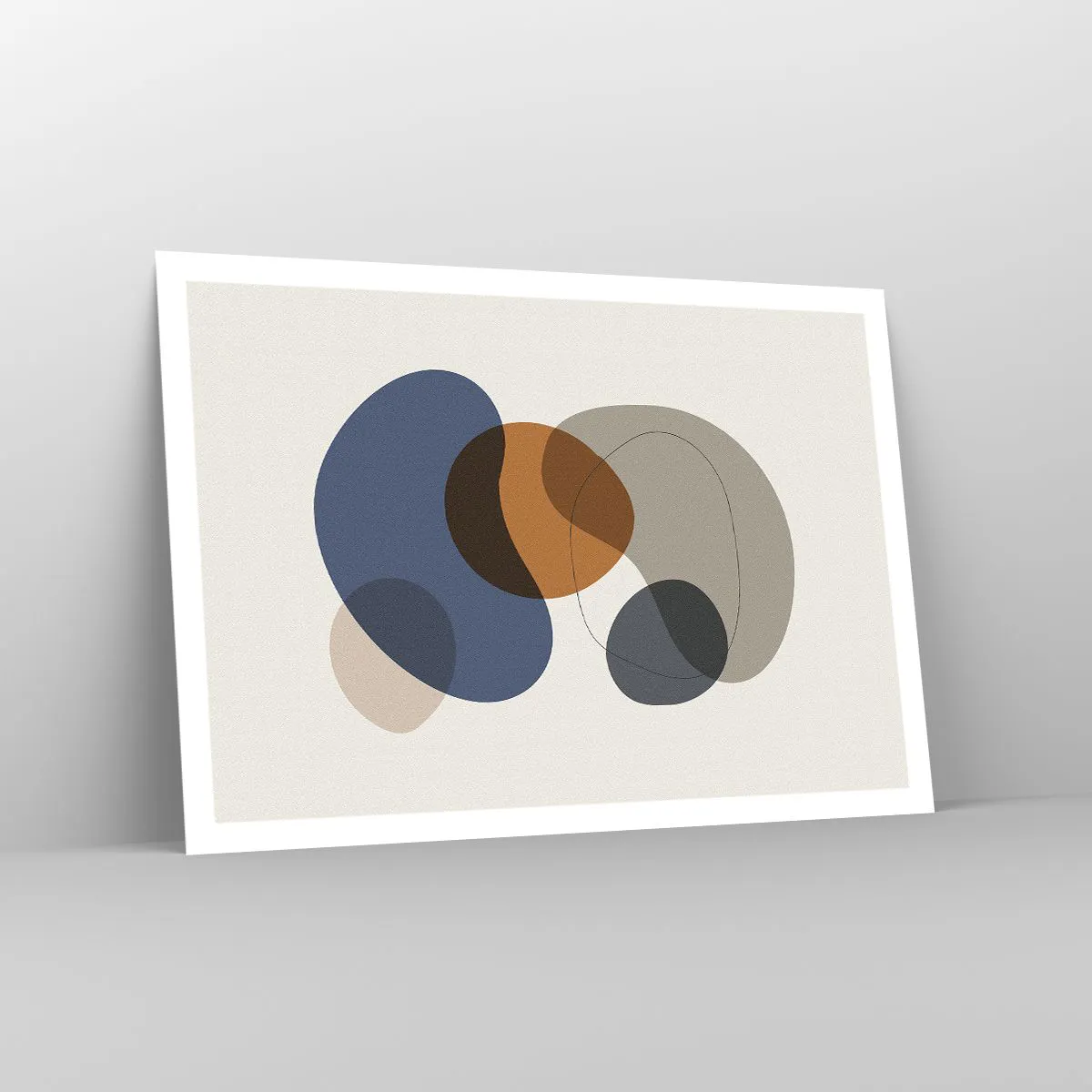 Poster - Forme astratte colorate nelle tonalità del blu e del marrone - 100x70cm - Gocce di colore - Decorazione murale moderna per soggiorno e camera da letto ARTTOR