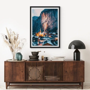 - Il poster raffigura un pittoresco villaggio invernale ai piedi di una maestosa parete rocciosa, illuminato da un caldo bagliore di luce. Perfetto per interni come il soggiorno, la camera da letto o l'ufficio. La cornice nera ne sottolinea l'eleganza.