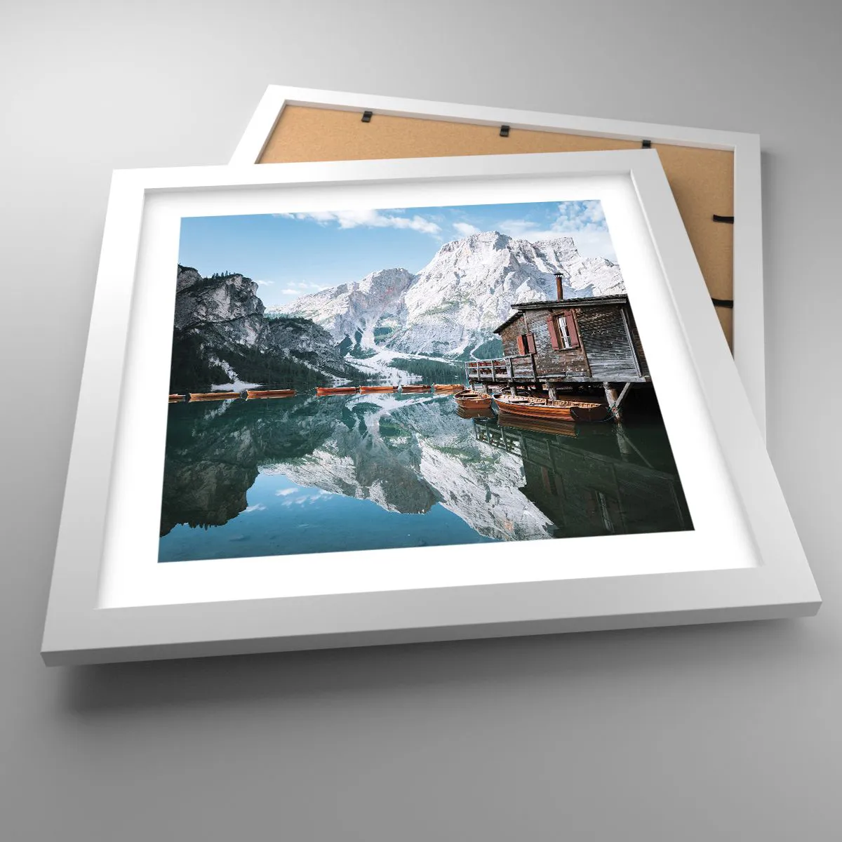 Poster in cornice bianca - Mattina cristallina sui monti - 30x30 cm