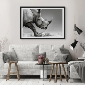Poster in cornice nera - Ritratto di un rinoceronte sullo sfondo di un deserto grigio - 70x50cm - Forza irrefrenabile - Decorazione murale moderna per soggiorno e camera da letto ARTTOR