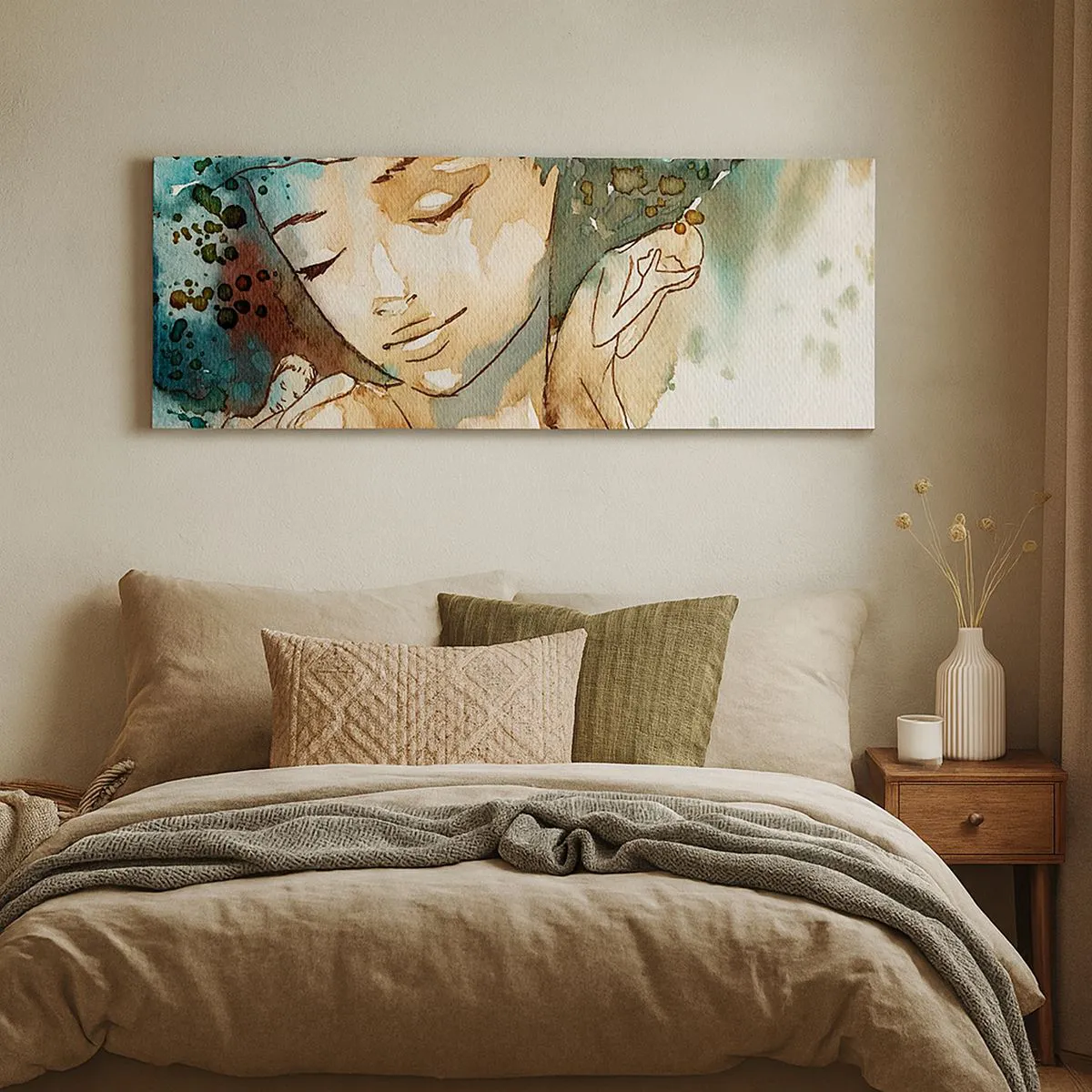 Quadro su tela - Stampe su Tela - Ritratto di una donna in delicati colori ad acquerello - 140x50cm - Lady in blue - Decorazione murale moderna per soggiorno e camera da letto ARTTOR