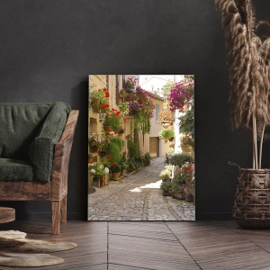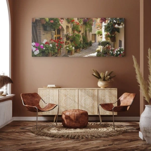 • Questa stampa su tela 120x80 cm raffigura un'incantevole strada piena di fiori e muri in pietra. Perfetta per interni di ispirazione mediterranea.