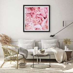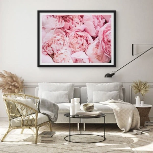 Poster in cornice nera - Un primo piano di delicate peonie rosa in piena fioritura - 50x70cm - Morbide e profumate - Decorazione murale moderna per soggiorno e camera da letto ARTTOR