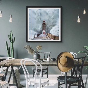 I dettagli del poster, come la consistenza dell'acqua, l'intensità delle onde e la solida costruzione del faro, creano una composizione incredibilmente realistica e toccante. Il contrasto tra la struttura luminosa del faro e il mare scuro e turbolento enfatizza la drammaticità della scena e aggiunge un tocco artistico. Questo è un elemento decorativo unico per chi apprezza la bellezza e la potenza della natura.