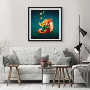 Poster in cornice nera - Una figura con una volpe in uno scenario magico di stelle - 50x70cm - Il piccolo principe - Decorazione murale moderna per soggiorno e camera da letto ARTTOR