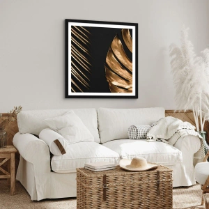 Poster in cornice nera - Foglie dorate su sfondo nero - 70x50cm - Diverse, ma ugualmente care - Decorazione murale moderna per soggiorno e camera da letto ARTTOR
