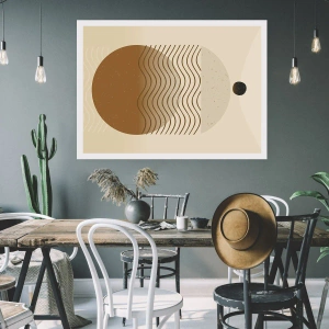 Poster - Astrazione geometrica con cerchi e linee ondulate in colori caldi. - 100x70cm - Sull'origine delle figure geometriche - Decorazione murale moderna per soggiorno e camera da letto ARTTOR