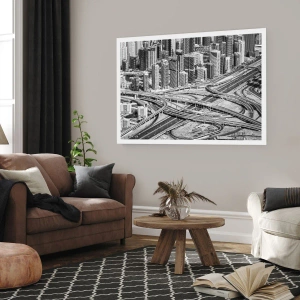 Poster - Panorama della città con rete stradale in stile bianco e nero - 50x70cm - Dubai - città impossibile - Decorazione murale moderna per soggiorno e camera da letto ARTTOR