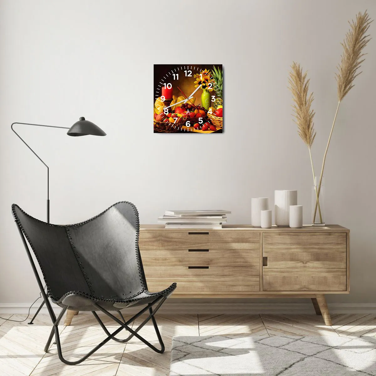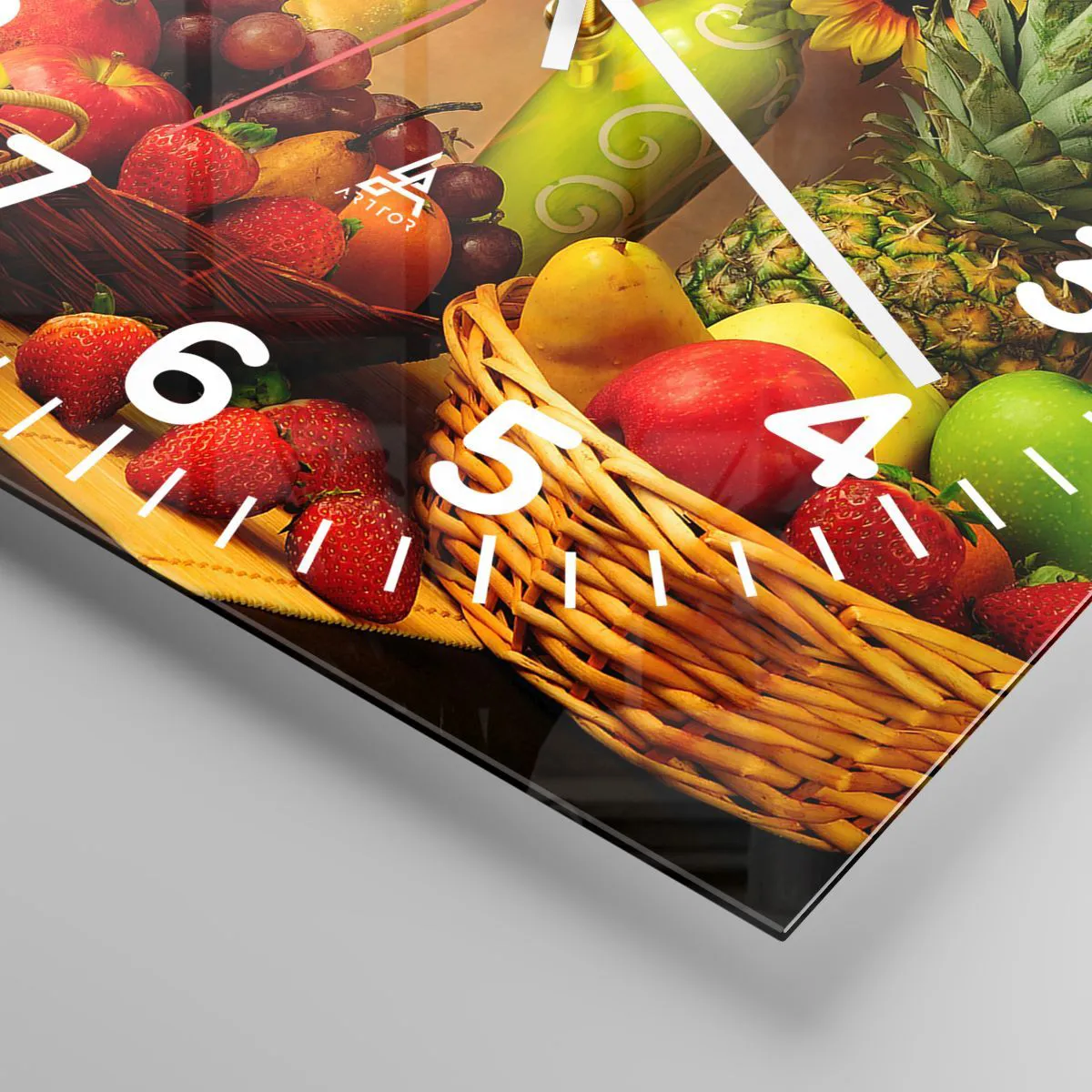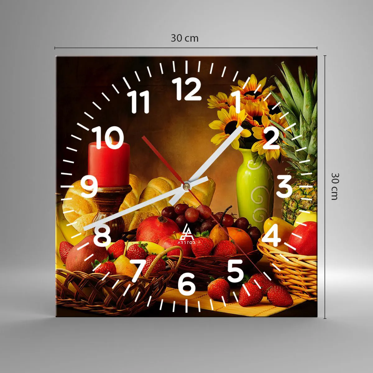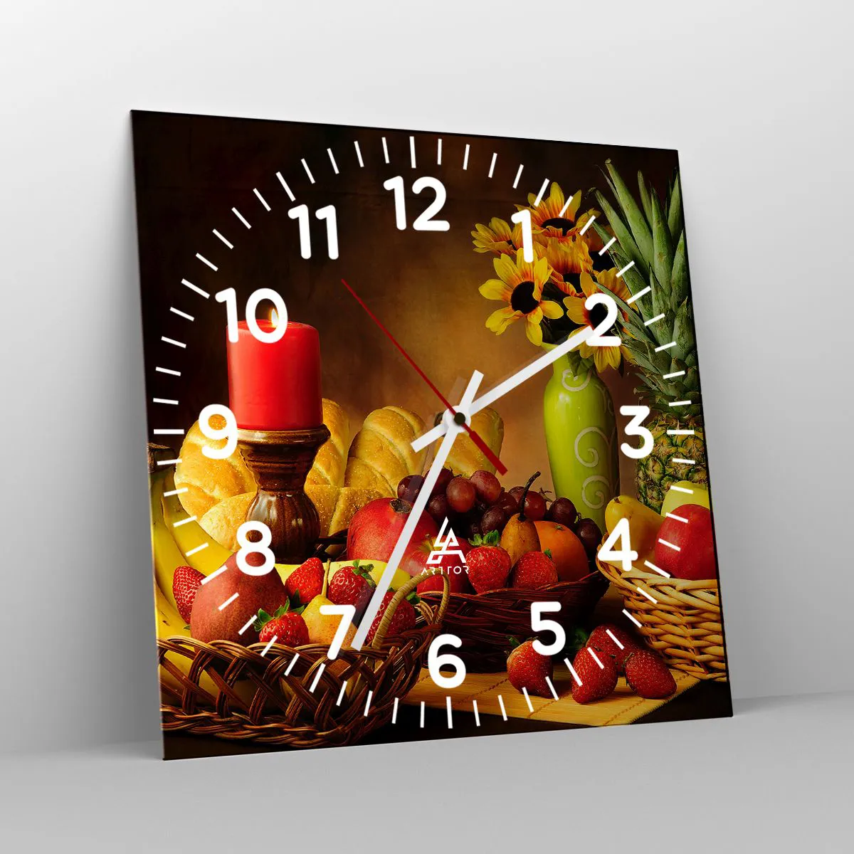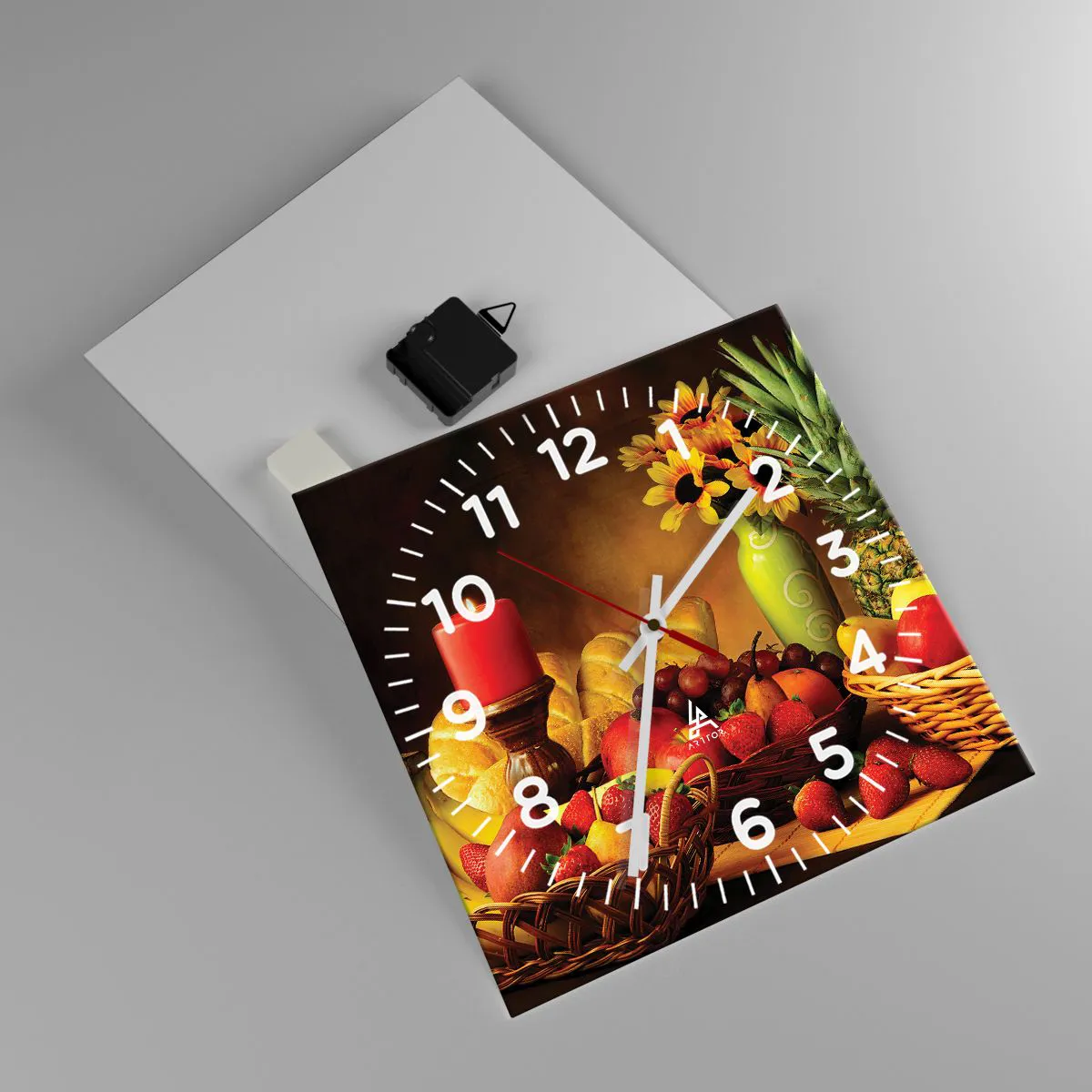 Orologio da parete - Orologio in Vetro - Natura morta con pane e frutta - 30x30 cm