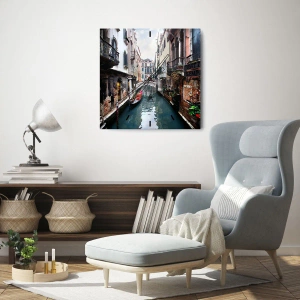 Orologio da parete - Orologio in Vetro - Paesaggio veneziano con gondola e ponte - 30x30 cm