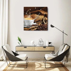 Orologio da parete - Orologio in Vetro - L'odore di caffè con la schiuma del colore del miele - 40x40 cm